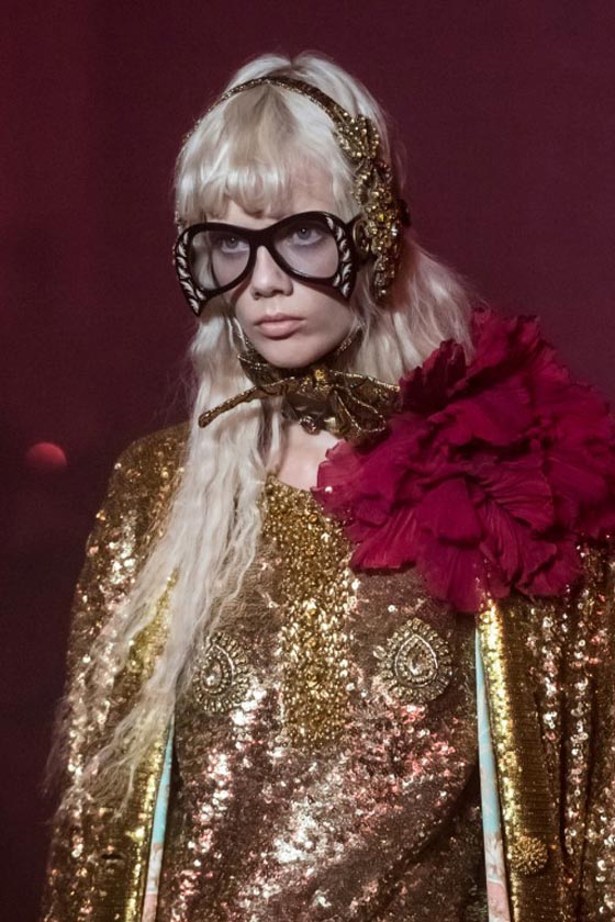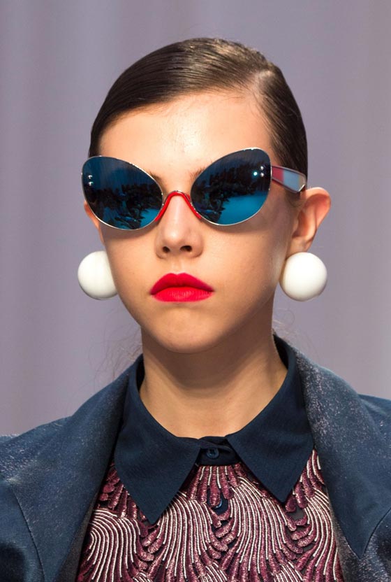 اعتمدت Gucci على النظارات التي تأخذ شكل عيون القطة والتي نفذّتها بشكل مقلوب فيما زيّنت Kenzo نظاراتها بأحجار الكريستال الكبيرة. وقد تكرّر ظهور نظارات عيون القطّة في عروض Marco Di Vincenzo وStella McCartney حيث تزيّنت النظارات أيضاً بزجاج المرايا بألوان الذهبي والأزرق. أما النظارات التي حملت توقيع Salvatore Ferragamo فقد اتخذت شكلاً دائرياً مع زاوية حادة عند الجانبين، وقد تزيّنت بطبعة المربعات التي أضافت عليها مزيداً من الابتكار.