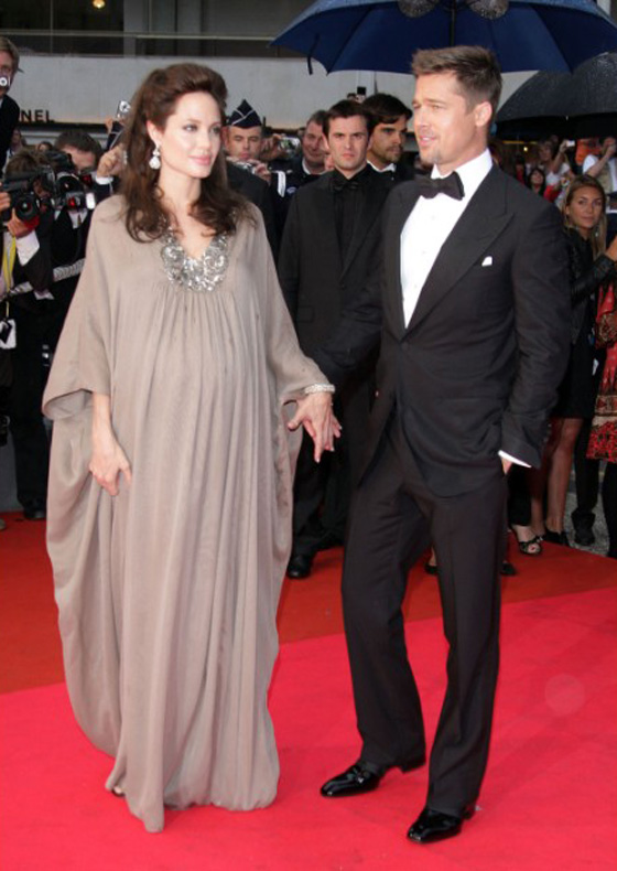 4. أنجيلينا جولي وبراد بيت في العام 2008: أعلن الثنائي جولي بيت عن حمل جولي بطفلين توأم خلال حفل مهرجان كان بالعام 2008.