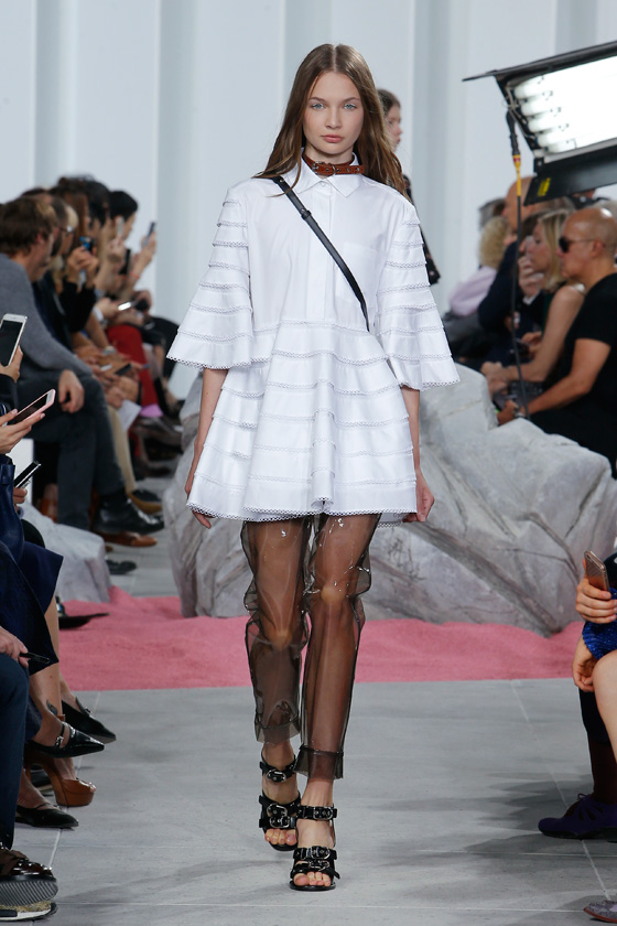 فساتين مثاليّة لساعات العمل الطويلة، لدعوات الفطور الصباحيّة في عطلة نهاية الأسبوع، لزيارة الصديقات والمقرّابات.. موديل سهل الإعتماد من الصيحات المينيماليّة التي فضّلت دور الأزياء تقديمه مع الأحذية البيضاء أيضاً؛ يمكن تنكيهه بالطابع الذي يعكس شخصيّتكِ. اعتمديه مع حذاء ستيليتو لإطلالة أنيقة، مع أنكل بوتس للمسة مشاغبة، مع حذاء سنيكرز للوك كاجوال... وإن كنتِ تحبّين المبالغة والجنون في اعتماد ملابسكِ، فنسّقي هذا الفستان مع سروال بلاستيكيّ شفّاف مثل لوك عارضة Carven.