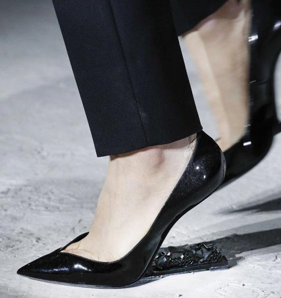 يستهدف هذا العرض هواة المغامرة والتغيير والاختلاف من النساء حيث جاءت الأحذية بإطلالات مختلفة وخاصة أحذية الكعب العالي فظهر الكعب العالي على هيئة أشكال عديدة باتخاذ شكل الفاكهة مثل كعب الاناناس أو شكل بعض الحيوانات في الكثير من الأحيان، ولكن هل تجرؤين على ارتداء هذا الشكل الغريب من احذية الكعب العالي؟ فإذا كنتِ من محبي الاختلاف والتغيير المستمر إليك مجموعة متنوعة من أشكال الكعب العالي موضة هذا العام فتعرفي عليها: