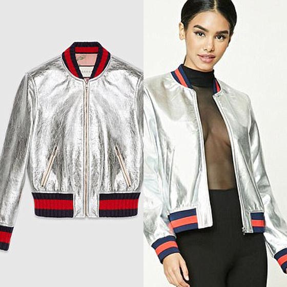أصدرت "فوريفر 21" قطعاً عديدة من السترات والتشوكر تتشابه جداً مع تصميمات "غوتشي" ذات التقليمات