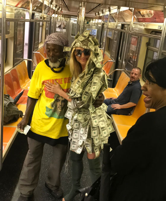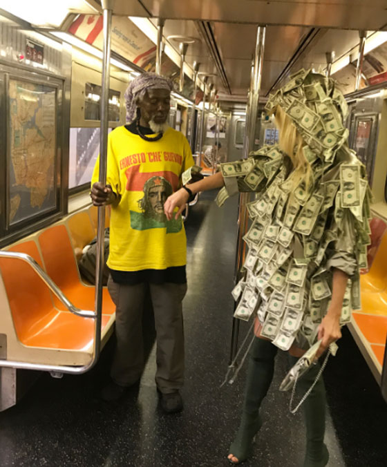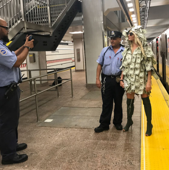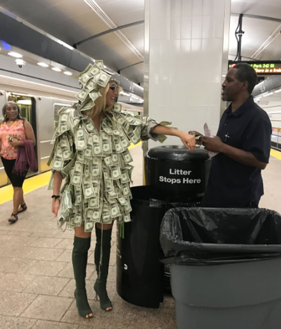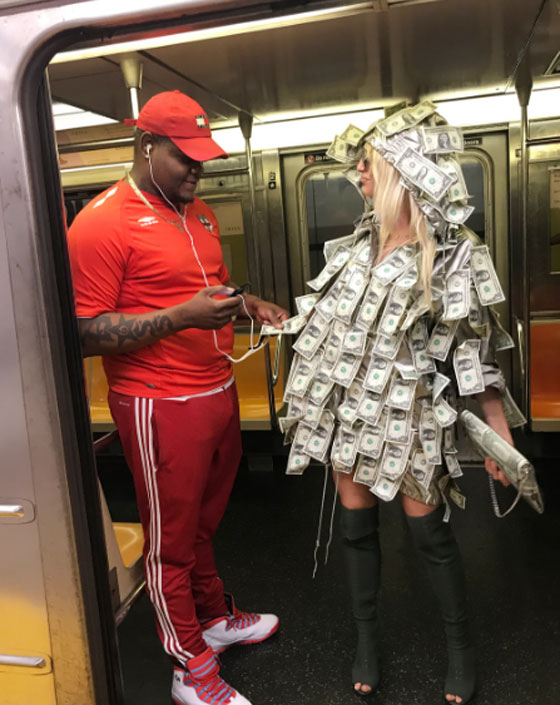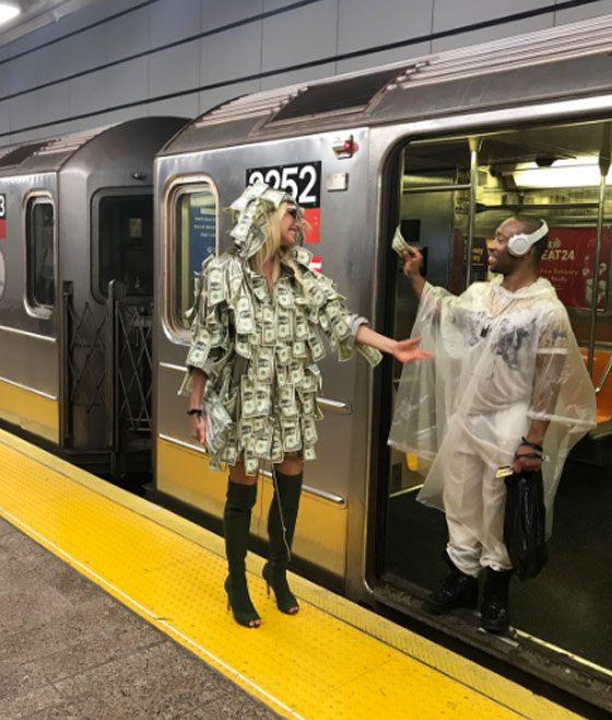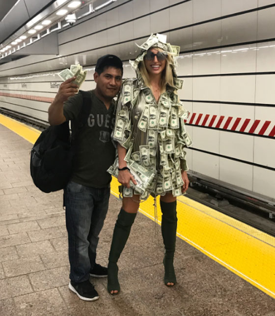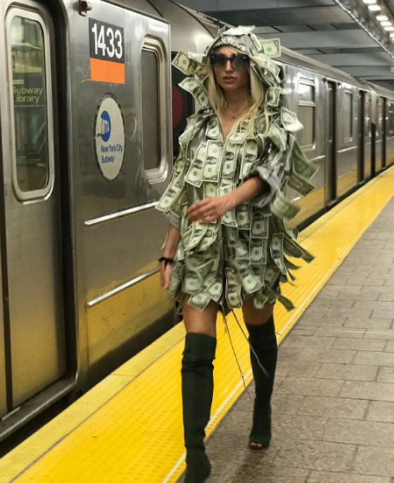 نشرت عارضة أزياء تتعاون مع مجلة عالمية اباحية ، مجموعة من الصور لها، عبر حسابها الرسمي على "إنستغرام"، وهي ترتدي فستانا مغطى بالأوراق المالية "دولارات". ارتدت العارضة الأرجنتينية فيكتوريا زيبوليتاكيس، 31 عاما، فستانا مليء بالأموال، وسمحت لركاب المترو بالتقاط المال في محاولة لمساعدة الآخرين.