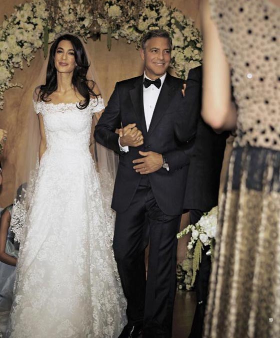 فستان زفاف امل كلوني Amal Clooney من تصميم اوسكار دي لارينتا Oscar de la Renta بلغ ثمنه 380 ألف دولار أميركي.