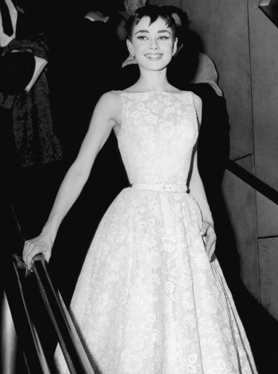 فستان أودري هيبورن Audrey Hepburn في حفل أوسكار عام 1954 من تصميم جيفنشي Givenchy بلغ ثمنه 131.300 دولار أميركي.
