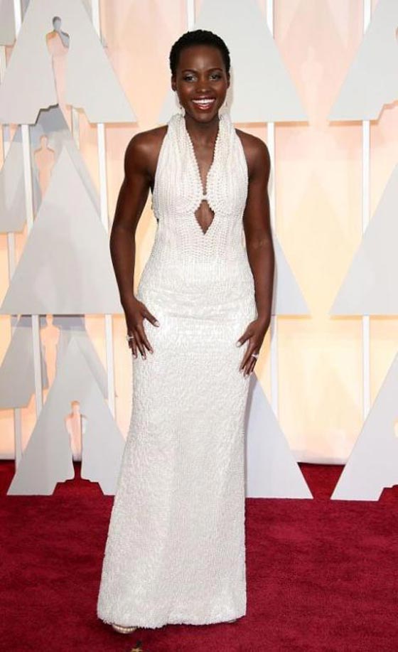فستان لوبيتا نيونغو Lupita Nyong'o في حفل أوسكار عام 2015 من تصميم كالفن كلاين Calvin Klein بلغ ثمنه 150 ألف دولار أميركي.