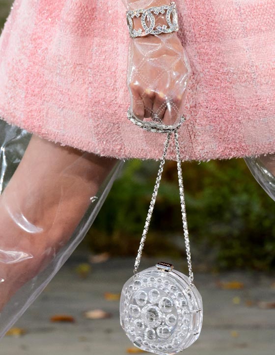 - اختارت دار شانيل الماء كموضوع لأزياء الربيع والصيف المقبلين، ولذلك اتخذت بعض حقائب مجموعتها أشكال قطرات ماء وتميّز بعضها الآخر بلونها الشفّاف الذي يذكر بالأجواء المائية.
