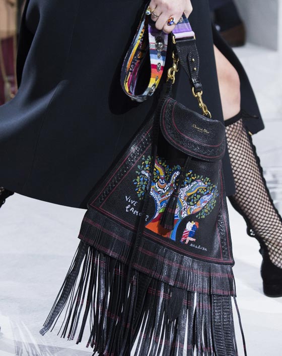 - حقائب ديور تميّزت بأشكالها غير التقليدية. وقد دخلت على بعضها الشراريب والطبعات والخطوط الملوّنة لتضيف عليها لمسات حيوية دون أن تفقد شيئاً من ترفها.