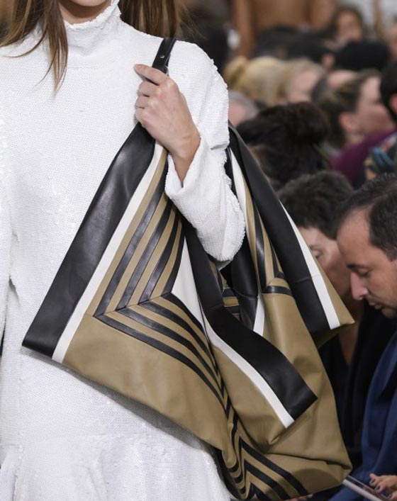 - تميّزت حقائب سيلين بأحجامها الضخمة وجاءت مستوحاة من أشكال الأوشحة الحريرية المزيّنة بخطوط، والتي يتمّ تعليقها على الكتف.