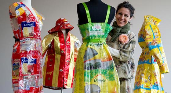 حقائب بلاستيكية أنيقة: تساءلت مصممة الأزياء والناشطة البيئية، كاتيل جيليبارت: "لماذا لا أصنع شيئاً مبدعاً من أكياس البلاستيك المتواجدة في كل مكان؟" وفعلاً، قامت المصممة بتحويل النفايات البلاستيكية إلى جاكيتات وحقائب وحتى إلى فساتين للسهرة الليلية. وأطلقت على تصميماتها ماركة آرت دي ايكو.
