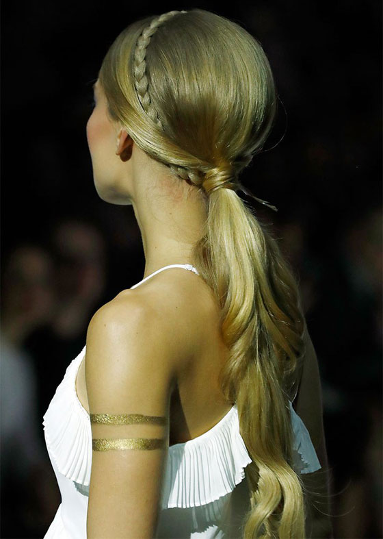 9- تبقى تسريحة الضفيرة ذات الطابع اليوناني القديم مثاليّة لمناسبات الصيف، خاصة إذا التفّت الضفيرة كقوس حول الرأس.
