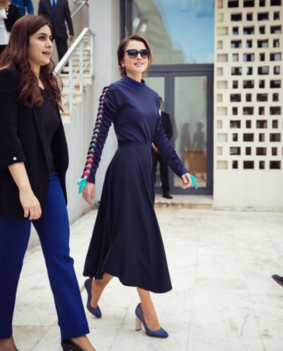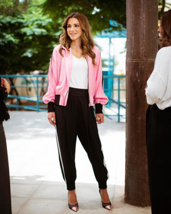 10 - تبقى إطلالات الملكة رانيا راقية حتى عند اعتمادها للأزياء ذات الطابع الرياضي، وهي تحسن تنسيق الألوان فيما بينها للحصول على طلّة متناغمة في كافة تفاصيلها.