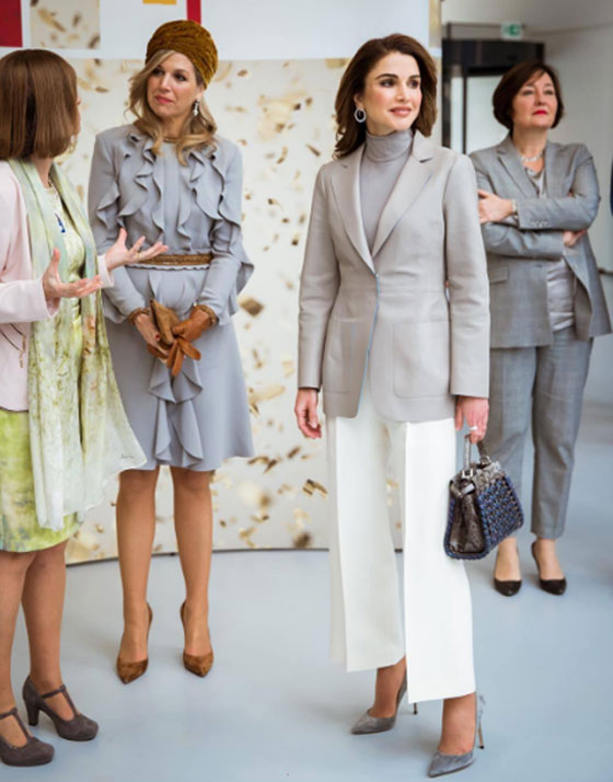 7 - تختار الملكة رانيا بعناية الحقائب والأحذية التي ترتديها وتبحث دائماً عن تصاميم مميّزة في هذا المجال، وهي تحرص على تنسيق أكسسواراتها مع تفاصيل أزيائها للحصول على إطلالة متكاملة بأناقتها.