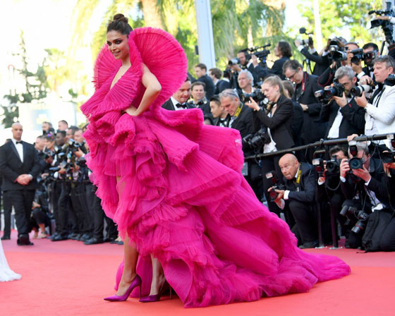 - تميّزت إطلالة دبيكا بادكون بكونها الأكثر ابتكاراً حتى الآن، ففي مرورها على البساط الأحمر للمهرجان لفتت النجمة الهندية الأنظار بثوب تزيّنه الكشاكش الضخمة حمل توقيع المصمم السعودي محمد آشي الذي أبدع في تصميمه وتنفيذه.