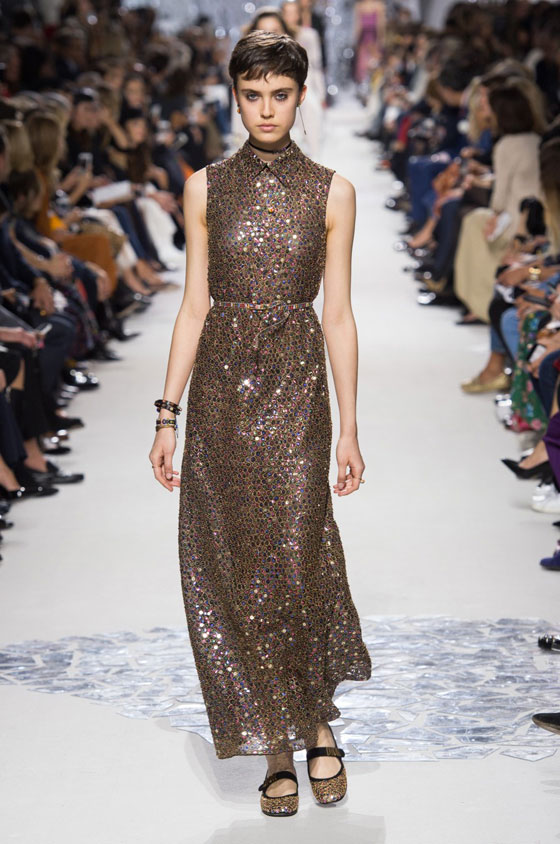 - لإطلالة شبابية عصرية جربي الأزياء المعدنية المغطاة بالترتر، يمكنكِ اختيار الفضي، أو الذهبي، أو البرونزي على طريقة دار Dior.
