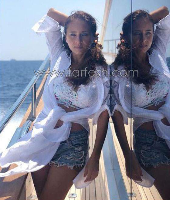 4. ياسمين رئيس: ظهرت النجمة ياسمين رئيس مؤخرًا في أحدث اطلالة لها، ببذلة بحرية مخططة بلوني الأبيض والأحمر، وفتحت الجاكيت لتظهر ملابس السباحة بخامة الكروشيه، مع اكسسوارات اليد المعدنية الملونة.