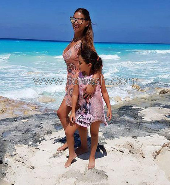 2. مي عمر: أما الفنانة مي عمر، فمنذ ظهورها على الساحة الفنية، وهي تتمتع بحريّة كبيرة في اختيار ما يناسبها من الأزياء، كاطلالتها بـ القميص الأبيض القصير، فوق ملابس السباحة، مع سكارف الشعر، والنظارة العاكسة.