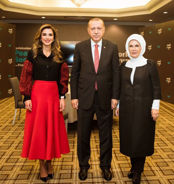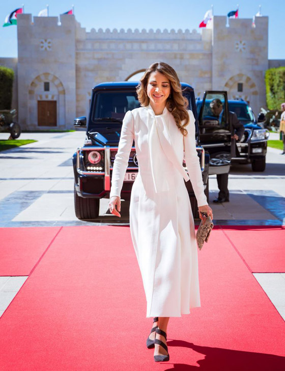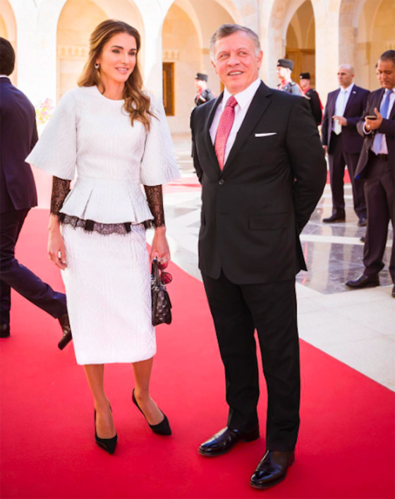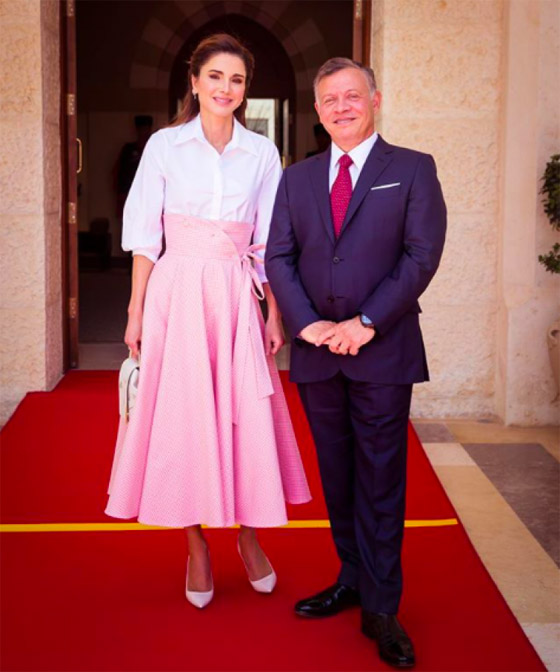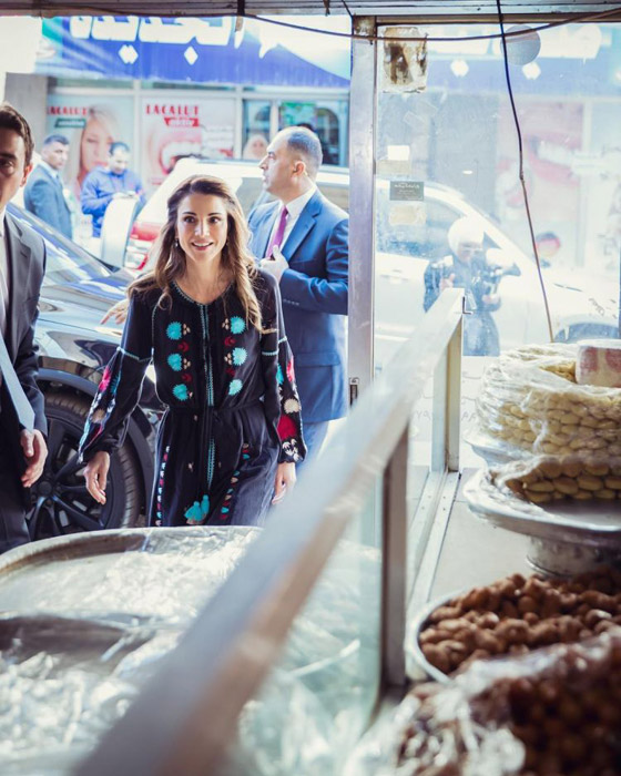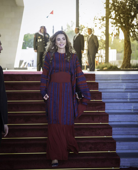 - في عيد استقلال الأردن الثاني والسبعين اختارت الملكة فستاناً من مجموعة Layeur "لايير"، أما في الزيارة الرسمية التي قامت بها والملك عبدالله إلى هولندا، فأطلّت الملكة بثوب أردني من تصميم جمعية "بصمة خير".