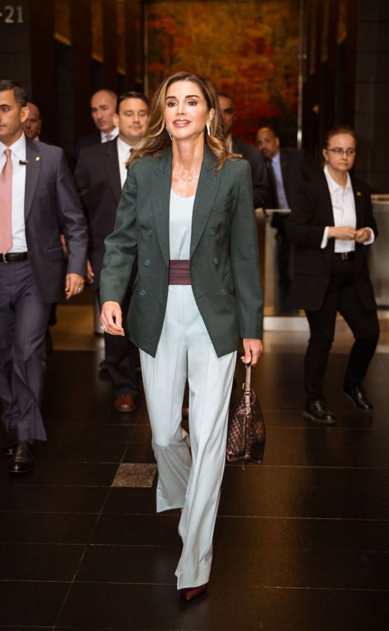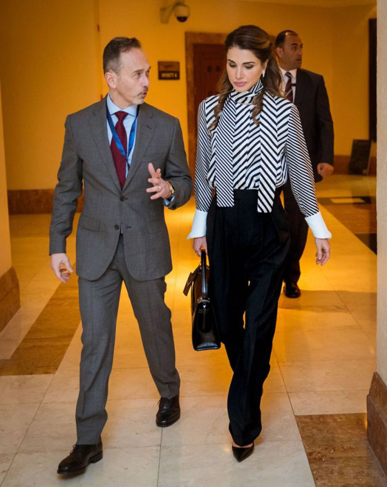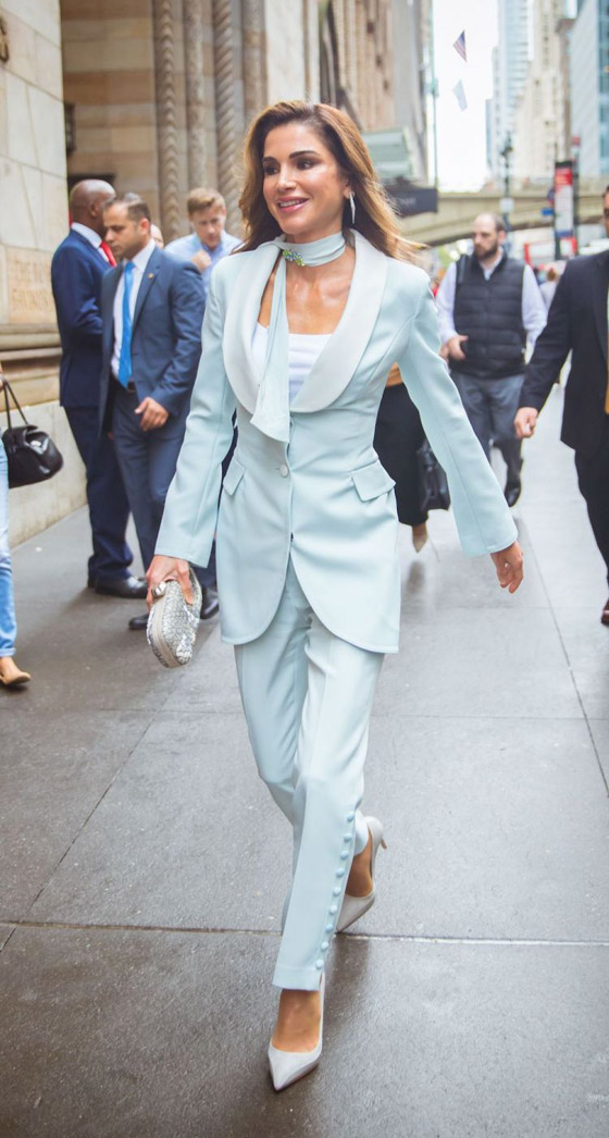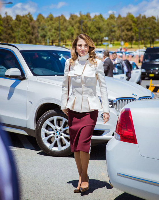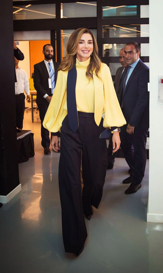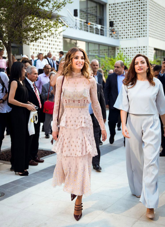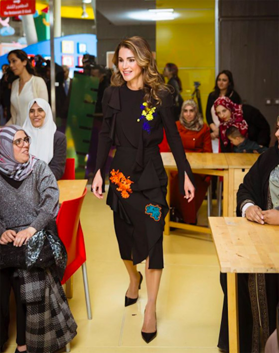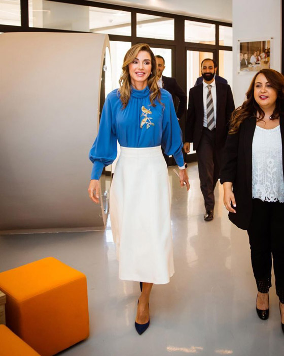 - في لقائها مع سيدات أردنيات، ارتدت الملكة قميصاً من تصميم سليم عزّام واختارت تصاميم من "ريمامي"، لزيارتها إحدى المدارس الوطنيّة في عمان ومتحف اللوفر في أبو ظبي.