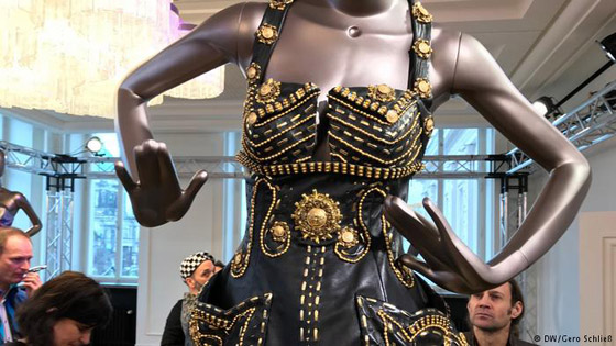 لم يتمكن أي مصمم من محاكاة تنوع تصاميم فيرساتشي. فهو استطاع المرة تلو الأخرى النجاح في إدخال الدهشة على عالم الأزياء، فقد تمكن في خريف عام 1992 من طرح مجموعة تصاميمه تحت عنوان: "القيود والأصفاد في عالم الموضة والإثارة"، لجأ إلى استخدام الجلود، والقلائد، والاساور في محاولة منه للوصول إلى الفكرة التي يسعى لإثباتها لجمهوره. إرتدت عارضة الأزياء ناعومي كامبل هذا الفستان المصنوع من مادة الجلد.