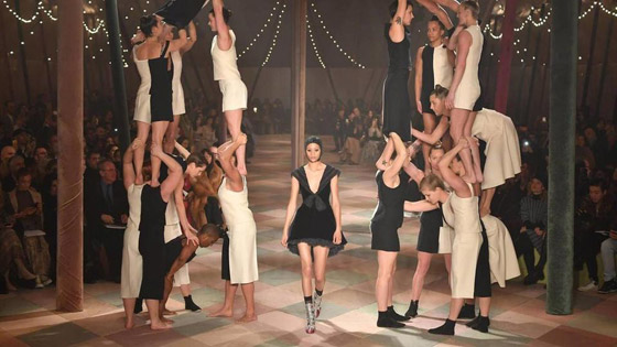 68 إطلالة ظهرت بها عارضات Dior على خلفية ألعاب بهلوانية مذهلة لمجموعة من لاعبات الجمباز المحترفات، تحت خيمة نُصبت للمناسبة بهدف استحضار روحية السيرك المفعمة بالحيوية والمرح. موضوع السيرك ليس بجديد على Dior، فمؤسس الدار السيد كريستيان ديور كان معروفاً بشغفه بهذا العالم وبكونه متابعاً لعروض سيرك الشتاء الباريسي. وهو إستلهم من أجوائه العديد من تصاميمه. أما ماريا غرازيا كيوري، فقد بحثت عن مصادر إلهام جديدة لها في أجواء السيرك الفيكنوري لتقدّم مجموعة من التصاميم تختلط فيها الأناقة العصرية بالبريق المترف.