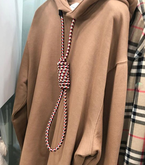 اعتذرت شركة الأزياء العالمية، "بربيري"، عن تصميمها الأخير الذي يظهر بوضوح "حبل مشنقة" يعلق من الرقبة، كشفت عنه في أسبوع لندن للموضة. وصدرت أولى الانتقادات اللاذعة للشركة، عن إحدى عارضات الأزياء لديها، ليز كينيدي، من خلال منشور لافت أطلقته على موقع إنستغرام، جاء فيه: "الانتحار ليس صرعة".