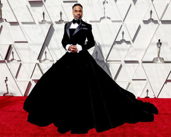 • ظهر الممثل والمغني بيلي بورتر برداء شديد الغرابة، يمزج بين السترة الرجالية وفستان أسود.