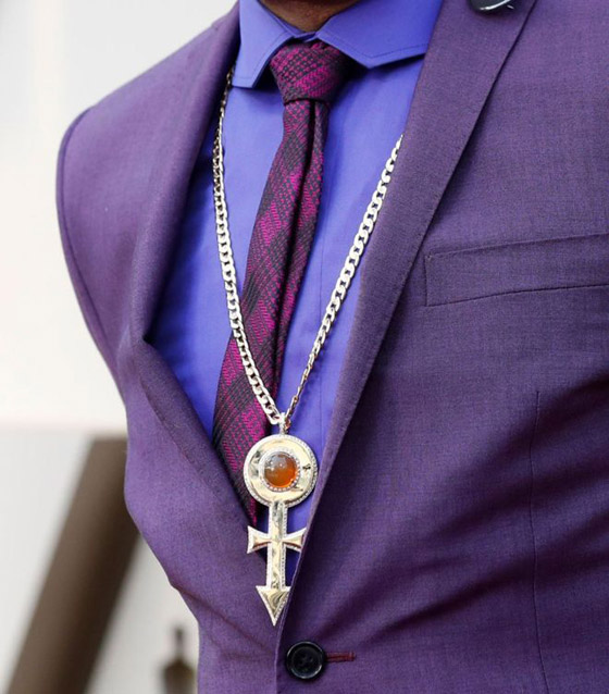 • ارتدى لي سبايك لي أيضا قلادة تشبه تلك التي اشتهر المغني الراحل "برنس" بارتدائها على خشبة المسرح.