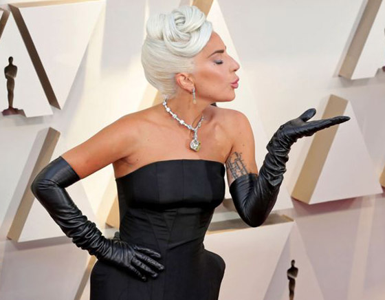 • أرسلت ليدي غاغا قبلة في الهواء للمصورين، في وقفة تحاكي مارلين مونرو، لكن جوهرة القلادة التي ترتديها تعود إلى نجمة أخرى، فهي تشبه جوهرة القلادة التي ارتدتها أودري هيبورن عام 1961.