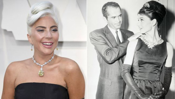 • وتقدر قيمة الجوهرة بخمسين مليون دولار. وقالت شركة تيفاني آند كو إنها خلعت الجوهرة من العقد الذي ارتدته هيبورن خصيصا لتعيد تصميمها لقلادة ليدي غاغا.