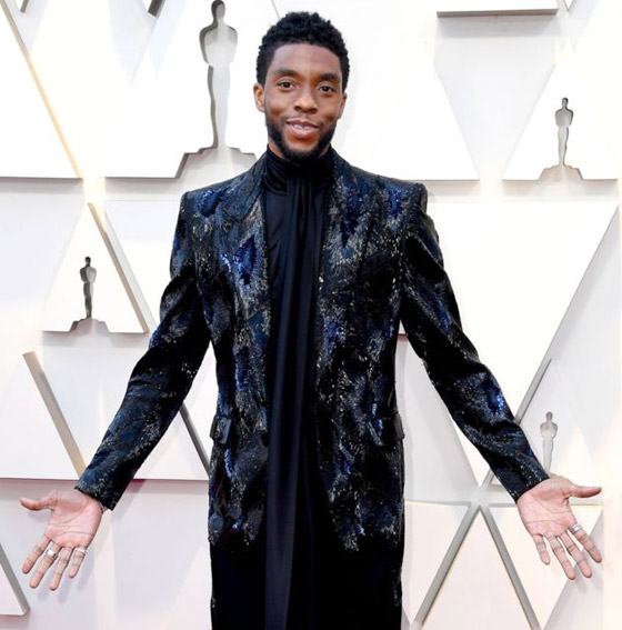 • ارتدى شادويك بوزمان، بطل فيلم "الفهد الأسود"، بدلة مرصعة تلألأت تحت أضواء الكاميرات.