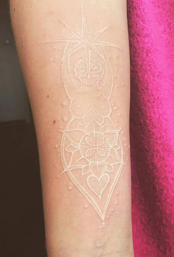 عندما يفكّر أحدهم في القيام بوشم، أول ما يخطر في باله هو اختيار تاتو أسود اللون أو حتى يمكن أن يكون ملوناً. لكن بدأت مؤخراً تنتشر أوشام باللون الأبيض، وعلى الرغم من أننا لم نعتد على رؤية مثيل لها، إلا أنها بدأت تلقى رواجاً لا بل تحوّلت هذه السنة إلى موضة أكثر فأكثر. وفي التالي سنقدم لكم قائمة بأفضل وأجمل الأوشام باللون الأبيض والتي اعتبرت لوحة فنية بحد ذاتها:
