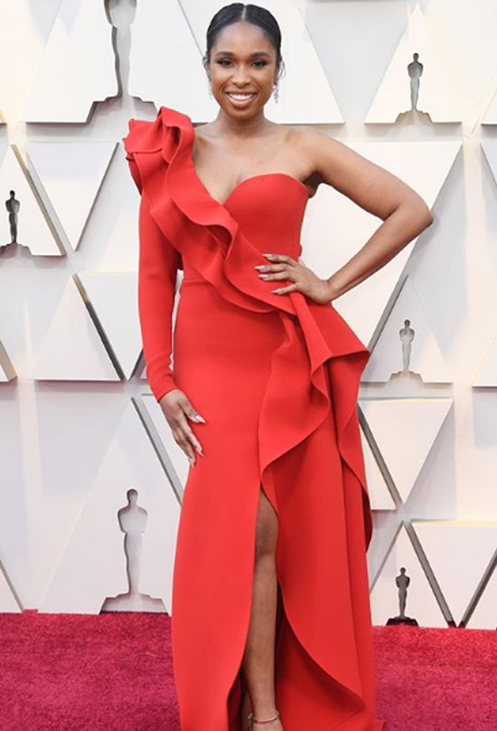 وارتدت المغنية الكندية، التي كانت قد اكتسبت شهرة واسعة خاصة بعد أغنيتها لفيلم "تايتانيك"، بدلة تعددت ألوانها بين الأسود إلى الأحمر والأصفر والأخضر والبنفسجي والأبيض.