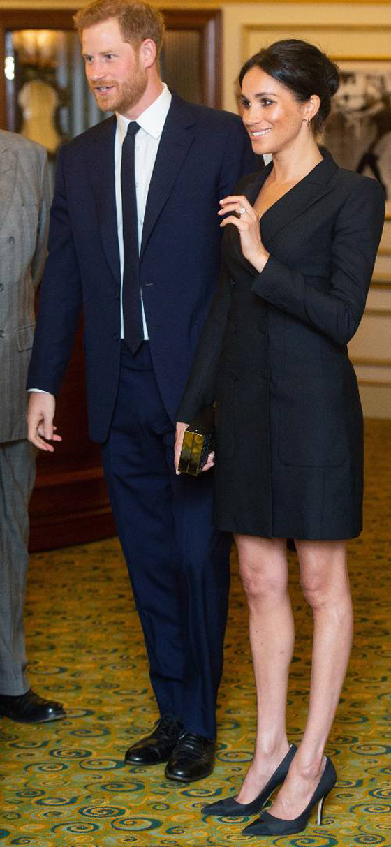 2- فساتين البليزر: ظهر الفستان المستوحى من تصميم السترات الرسمية "البليزر" كقطعة رائجة هذا العام، خاصة بين النجمات، لكن المفاجيء أن يكون هذا التصميم العصري ضمن الأزياء الملكية. اعتمدت دوقة ساسكس فستان مستوحى من تصميم البليزر بياقات رسمية وصدرية مزدوجة، واللافت أنها كسرت قواعد الأزياء الملكية باعتماد فستان قصير كهذا. أما ملكة إسبانيا ،ليتيسيا، فاعتمدت الصيحة نفسها لكنها أخفت ساقيها بزوج من الجوارب السوداء التي تعد قطعة غير مفضلة بين الملكات أو نساء العائلات المالكة بشكل عام.
