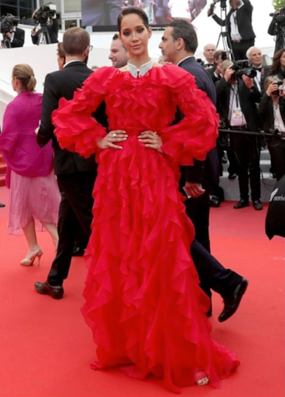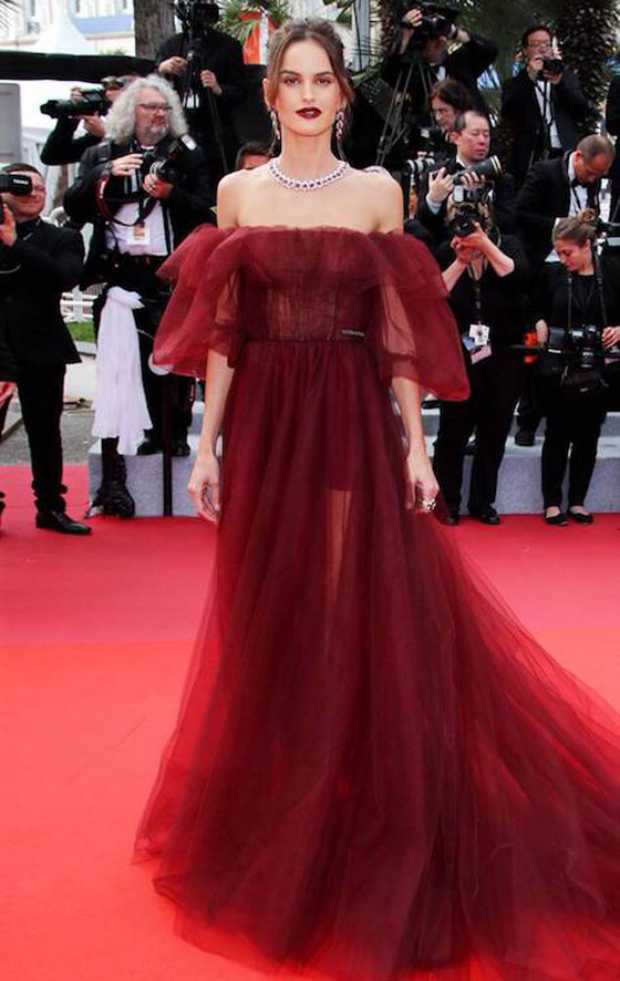 عارضة الأزياء البرازيلية إيزابيل غولارت Izabel Goulart، كانت من الأكثر أناقةً على سجادة مهرجان كان حتى الآن، واطلالاتها مساء أمس التي اختارتها من دار "فالنتينو" Valentino تشهد لها على ذلك، وكانت عبارة عن فستان من قماش التول باللون الأحمر العنابي، مكشوف الأكتاف ومزين بالكشكش بطريقة ناعمة، نسقت معه مجوهرات ماسية مرصعة بأحجار حمراء أيضًا من دار "شوبارد" Chopard.