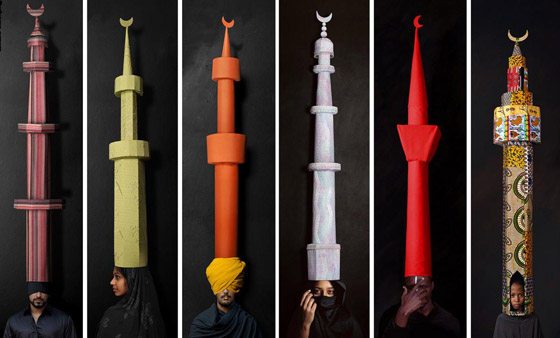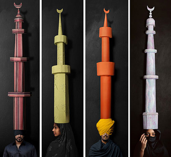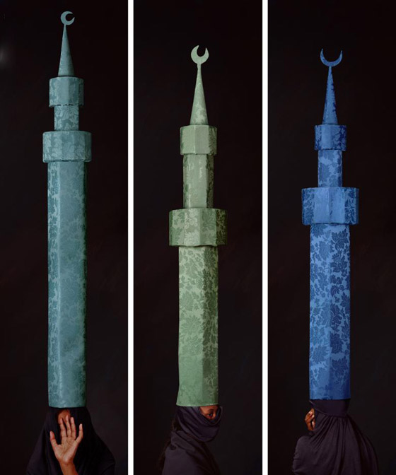 وفي الصور، تبدو الشخصيات وكأنها "منفصلة عن العالم لتدخل في وئام مع الروح الإلهية"، وذلك خلال تغطيتهم لوجوههم بإيماءات من أيديهم، إضافةً لكون بعض الأشخاص معصوبي العينين. ومن الطبيعي أن يتساءل المرء إذا كانت هذه القبعات مصممة على شكل على مآذن مساجد حقيقية، والجواب هو نعم.