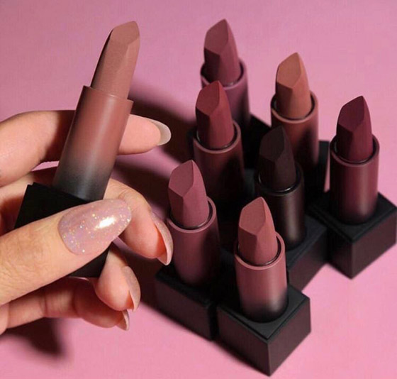 بدأ أحمر الشفاه كصخور حمراء محطمة، وتطور إلى السائل الذي يجف على البقع غير اللامعة والذي يدوم طوال اليوم، ثم تغير كثيرًا منذ ذلك الحين، وأصبح لا يشير فقط إلى أنابيب من مادة تشبه الطين.