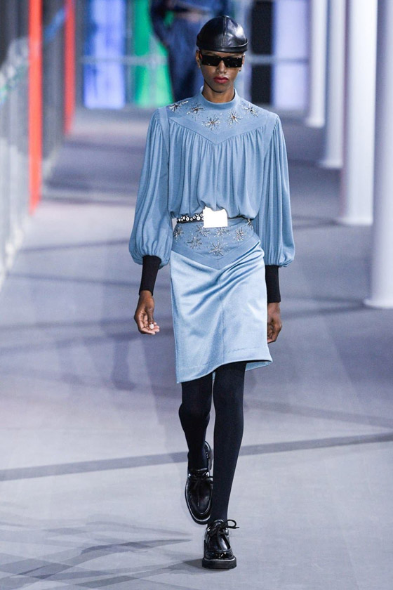 اللون الأزرق الفاتح ظهر بكثافة في المجموعات الشتويّة، مضيفاً لمساته المشرقة على الإطلالات. وقد رصدناه لدى دار Louis Vuitton كما رأيناه لدى Paco Rabanne وJacquemus حيث زيّن بأناقته المنعشة الفساتين الخريفيّة.