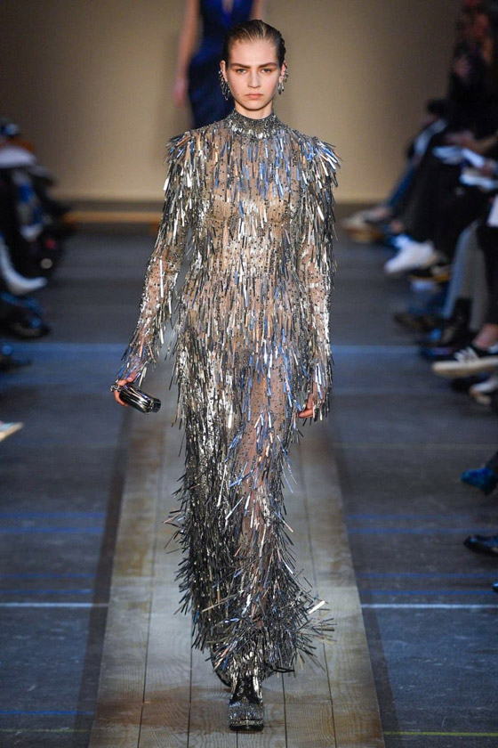 الخبر السار هو أن الأسود ليس من الألوان الأساسيّة هذا الخريف، رغم كونه من الألوان التي لا تبطل موضتها في المجموعات الخريفيّة والشتويّة عادةً. كما أن اللون الرمادي خفّ استعماله بشدّة ليحلّ مكانه اللون الفضّي الكامد حيناً واللمّاع حيناً آخر. فقد رصدناه لدى Courreges حيث زيّن السترات الجلديّة، في تصاميمAlexander McQueen التي تزيّنت بالشراريب البرّاقة، لدى Altuzarra حيث تلوّن بالمعدني الداكن. كما رأيناه يزيّن التصاميم العصريّة في مجموعات Balenciaga، وPaco Rabanne.