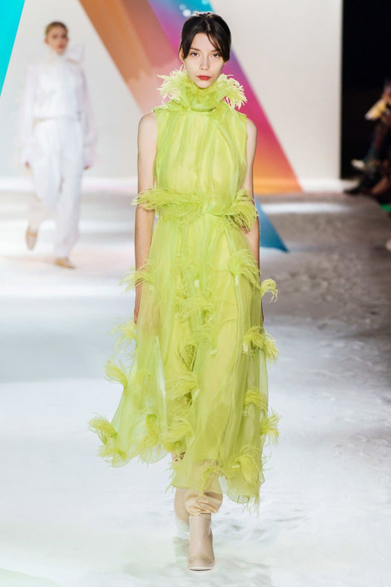 اللون الأخضر المنعش أضفى لمساته المشرقة على العديد من المجموعات الشتوية. وقد رصدناه لدى Gucci حيث تزيّن بالتطريز، ولدى Roksanda حيث تزيّن بالريش، ولدى Givenchy حيث تزيّن بالأزهار.