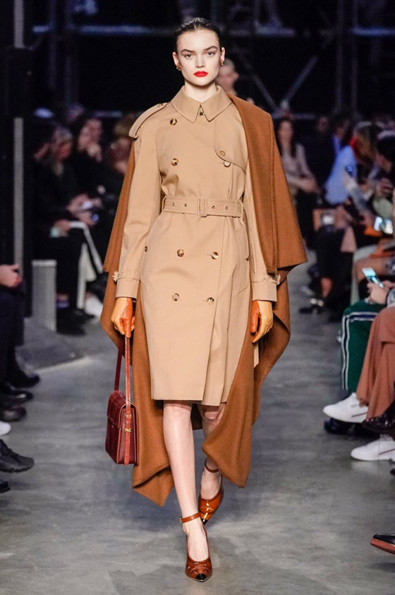 اللون البيج العاري أضفى طابعه الحياديّ على العديد من الإطلالات وخاصةً المعاطف الواقية من المطر ومعاطف الجوخ. وقد رصدناه لدى Burberry وChloe وMax Mara كما رأيناه يزيّن الأثواب لدى Stella McCartney والبدلات لدى Gucci والتنانير الجلديّة لدى Hermes.