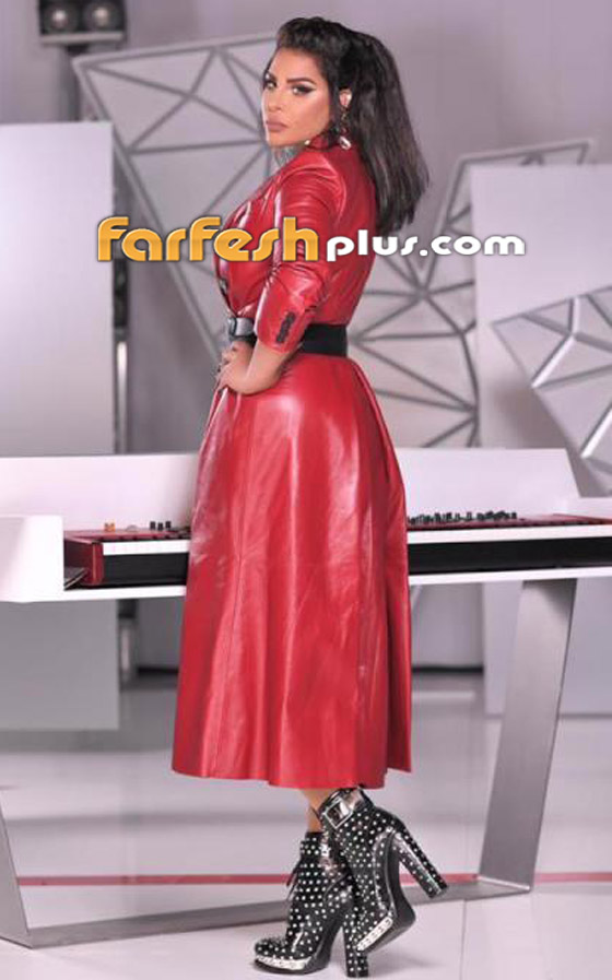 معطف من الجلد باللون الأحمر نسقته أحلام في برنامج ذا فويس