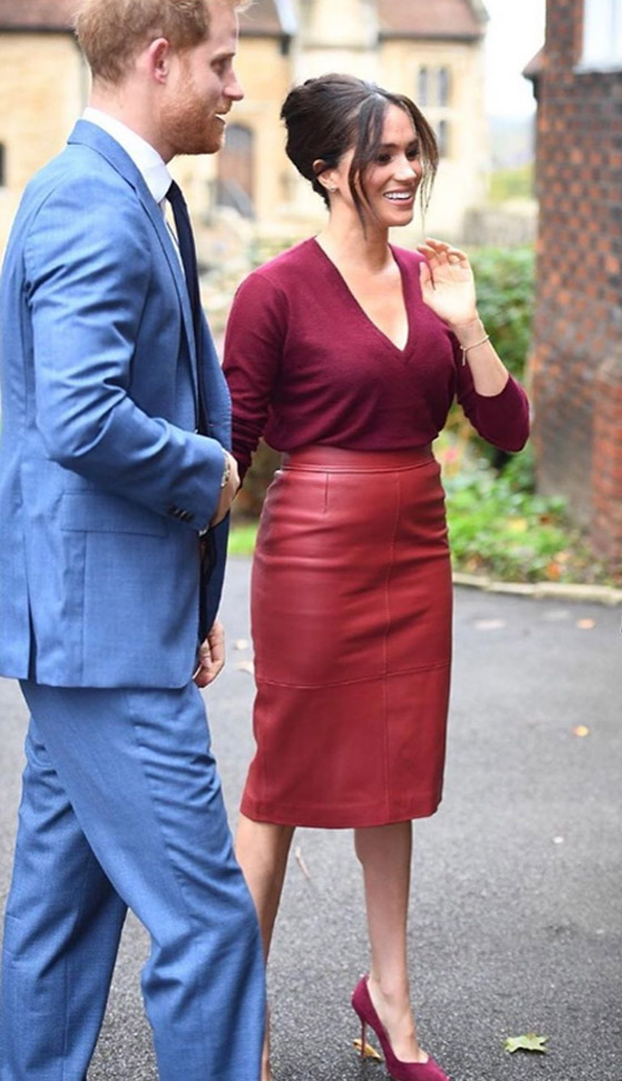 يبدو أن عضوات العائلات الملكية يتشاركن الذوق نفسه عندما يتعلق الأمر بالأزياء الرسمية، فبعد أن ظهرت الملكة الإسبانية دونا ليتيزيا بإطلالة مكونة من تنورة قلم الرصاص الجلدية وبلوزة بيضاء، قررت دوقة ساسكس ميغان ماركل ارتداء التنورة نفسها الجلدية مع تغيير القميص العلوي في اليوم التالي.