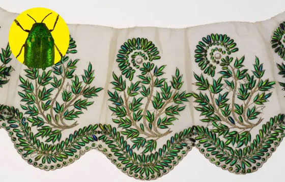 الحشرات عامل مساعد: ظهرت في العصر الفيكتوري إحدى صيحات الموضة المريبة، والمتمثلة في تزيين الملابس بأجنحة الحشرات وتحديدا الخنافس، حيث كان من السهل تجميع تلك الأجزاء من أجسادهم الصغيرة نظرا لأنه مع وفاة تلك الحشرات تبقي الأجنحة على حالها، ليحصل عليها مصممو الملابس الذين اعتمدوا على ألوانها من أجل تزيين الفساتين.