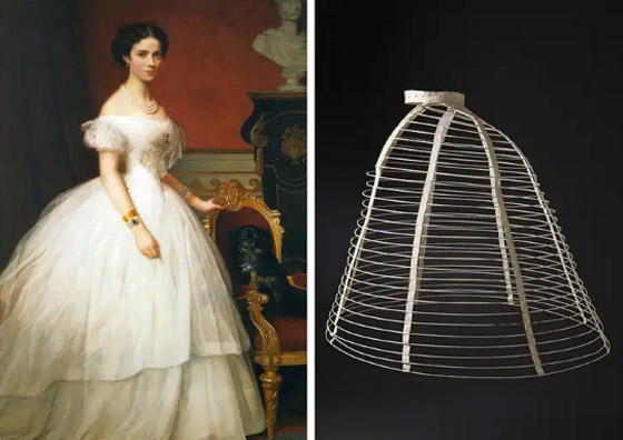 فساتين منتفخة للغاية: على عكس موضة الفساتين الضيقة التي ظهرت من قبل، جاء العصر الفيكتوري ليكشف عن واحدة من أغرب صيحات الموضة، والتي تتلخص في الفساتين الضخمة، والتي كان اتساع حجمها يزيد من جمالها في عيون البعض، لذا ظهر الكرينولين وهو عبارة عن هيكل قاس ترتديه المرأة أسفل الفستان، ليبدو منتفخا بشكل غريب أحيانا، طالما تسبب في حدوث مشكلات لمن يرتديه مع اشتباك التنورة بإحدى البوابات أو عربات الأحصنة.