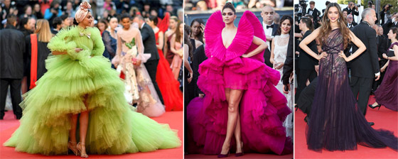 1- آيشواريا راي: يمكن اعتبار النجمة الهنديّة آيشواريا راي التي تحمل لقب ملكة جمال العالم للعام 1994، بأنها إحدى أكثر نجمات بوليوود أناقة. وقد ظهرت خلال العام 2019 بإطلالات فاخرة على البساط الأحمر للمهرجانات العالميّة كان أبرزها بثوب أبيض تزيّن بالريش وحمل توقيع المصمم السعودي محمد آشي، وذلك خلال مهرجان كان السينمائي. وهي تألقت بثوب ذهبي ذات طابع مستقبلي تزيّن بذيل متعدد الأطوال وحمل توقيع المصمم اللبناني جان لوي صاباجي، كما لفتت الأنظار بثوب مطبّع بالأزهار لدى مشاركتها في فعاليات أسبوع باريس للموضة وتحديداً بعرض Giambattista Valli.