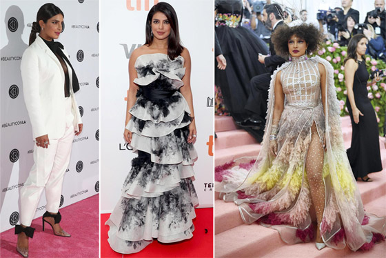 3- بريانكا شوبرا: تعتبر بريانكا شوبرا إحدى النجمات الهنديّات الأكثر شهرةً، هي الحاصلة على لقب ملكة جمال العالم للعام 2000 بالإضافة إلى عدة جوائز فنيّة عالميّة. وقد ظهرت هذا العام بعدة مناسبات فنيّة وتألّقت بإطلالات فاخرة كان أبرزها الثوب المونوكرومي الذي زيّنته الكشاكش وحمل توقيع دار Marchesa وارتدته خلال مهرجان تورنتو السينمائي. كما تألقت ببدلة بيضاء حملت توقيع المصممة البريطانيّة فيكتوريا بيكهام وظهرت بها في حفل BeautyConالشهير، أما إطلالتها التي لا تُنسى فكانت خلال حفل Met Gala وحملت توقيع دار Christian Dior.
