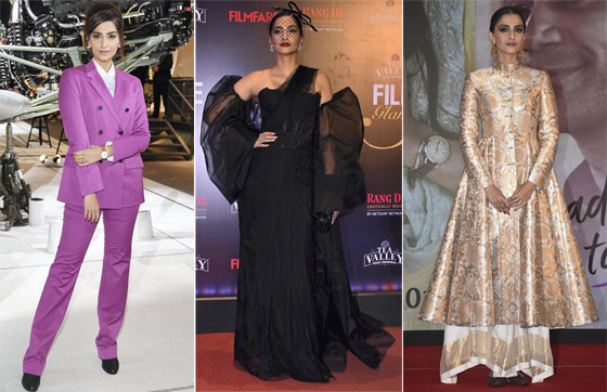 4- سونام كابور: تتمتع النجمة الهنديّة سونام كابور بشهرة محليّة وعالميّة خوّلتها أن تكون إحدى أبرز نجمات بوليوود. وقد شاركت خلال العام 2019 بالعديد من المهرجانات وتألّقت بإطلالات من أبرزها البدلة الليلكيّة التي حملت توقيع دار Calvin Klein الأميركيّة، الثوب المصنوع من البروكار الذهبي والذي حمل توقيع المصمم الهندي Rajesh Pratap Singh، بالإضافة إلى إطلالة باللون الأسود من دار Shehla Khan ترافقت مع أكسسوار للرأس من توقيع مصمم القبعات البريطاني الشهير فيليب ترايسي.