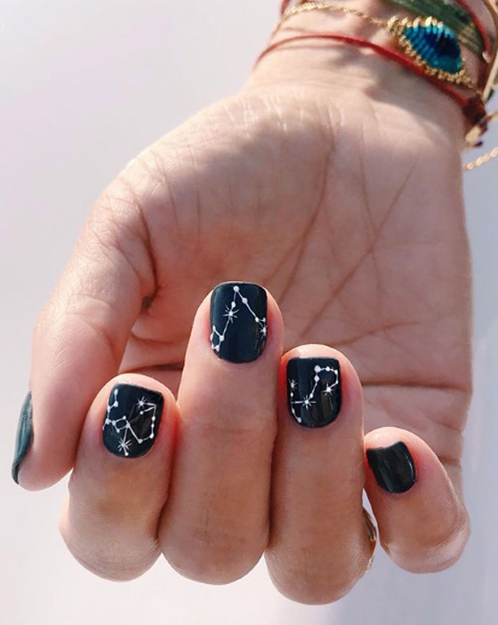 الأشكال الكونية: من الصرعات التي ستنتشر بقوة في عام2020، من الممكن أن تطبقيه بخلفيته السوداء والنجوم والاشكال الكونية البيضاء أو بخلفية بنية اللون مع رسومات فضائية لامعة.