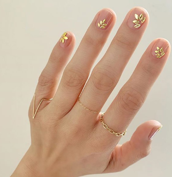 اللوحات النباتية: من الموضات التي ستنتشر في عام 2020، هي رسومات النباتات مثل رسمة نبات القمح بلونها الذهبي على لون الظفر الطبيعي .