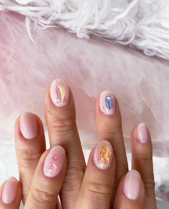 الطلاء الكريستالي: يمكنك تطبيقه عن طريق وضع الوان طلاء الأظافر اللتي تشبه الأحجار والكريستالات مع إضافة رسومات كريستالية ملونة.